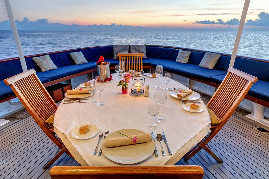 The most often praised aspects of a Pelagian cruise are the warm hospitality of the crew and the elevated levels of personal service made possible by limiting each cruise to a maximum of ten guests served by a crew of 12. “Every crew member from the stewards to the tender drivers and the Dive Experience Managers (DEMs)are in direct contact with guests,” Judith says. “They provide the perfect balance between professionalism and a friendly attitude, creating a homelike experience for our guests.”